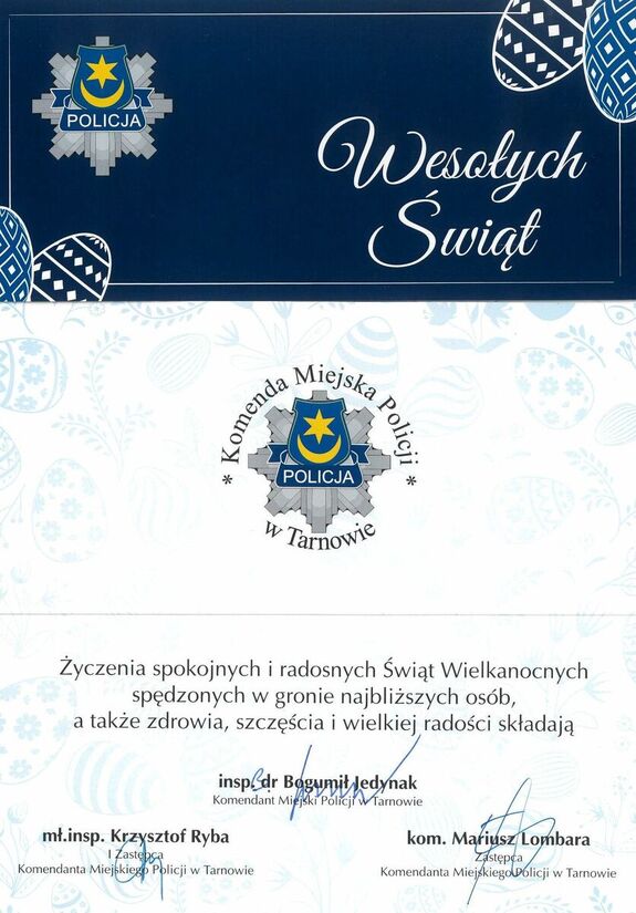Życzenia od kierownictwa tarnowskiej Policji z okazji Świąt Wielkanocnych