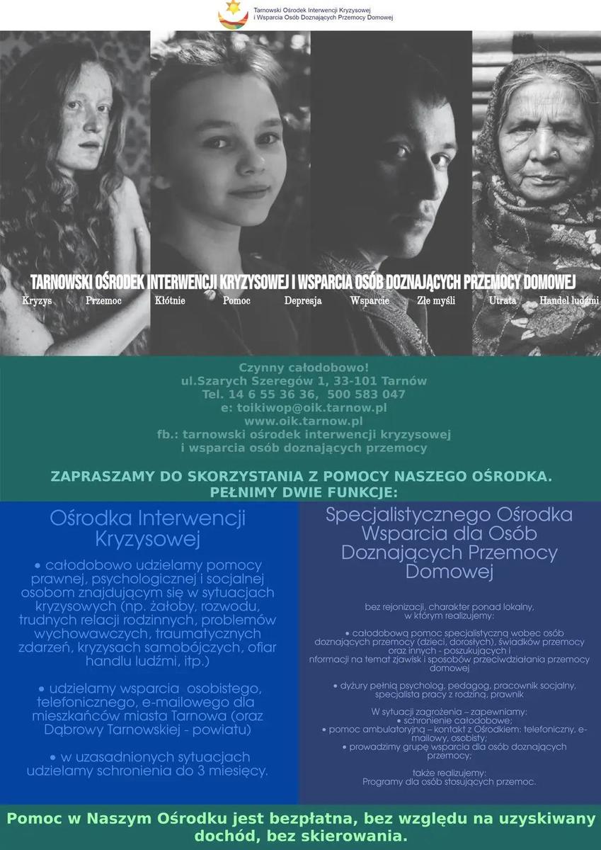 Przez cały rok bezpłatną pomoc osobom pokrzywdzonym przestępstwem, znajdującym się w kryzysie oraz doświadczającym przemocy domowej zapewnia Tarnowski Ośrodek Interwencji Kryzysowej i Wsparcia Osób Doznających Przemocy Domowej. Specjaliści udzielają kompleksowego wsparcia, pomagając bezpiecznie przejść przez trudny etap życia.