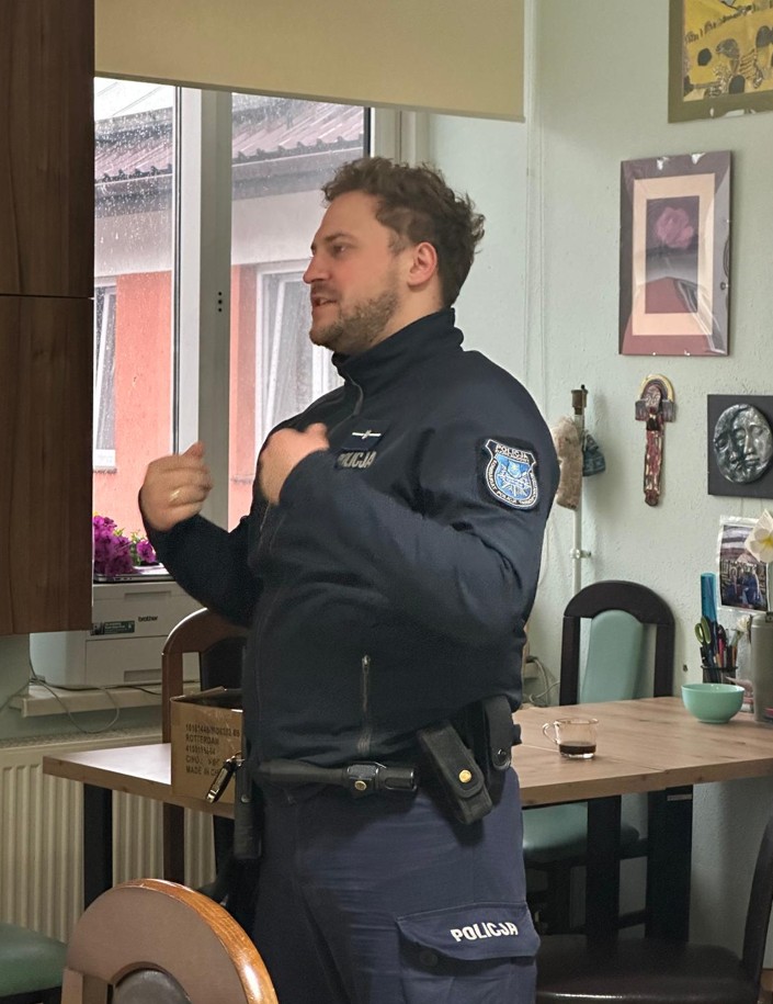 Istotną częścią spotkania była rozmowa na temat bezpieczeństwa wśród pensjonariuszy ŚDS. Funkcjonariusze poruszyli temat zagrożeń związanych z oszustwami „na legendę” oraz innymi metodami wyłudzeń. Uczestnicy dowiedzieli się, jak rozpoznać próbę oszustwa, jak reagować w sytuacji zagrożenia oraz gdzie szukać pomocy. Celem było zwiększenie świadomości i zminimalizowanie ryzyka stania się ofiarą przestępstwa.